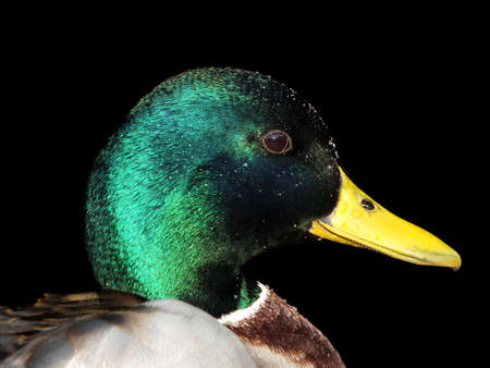 Close up portrait of the head of a Mallard Duck