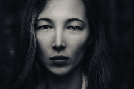 Artistic dark portrait of sensual woman with beautiful face and eyes