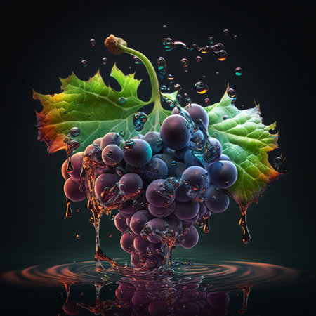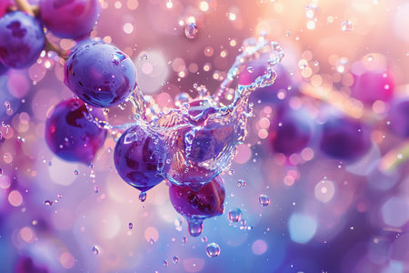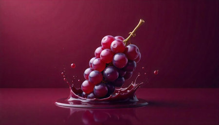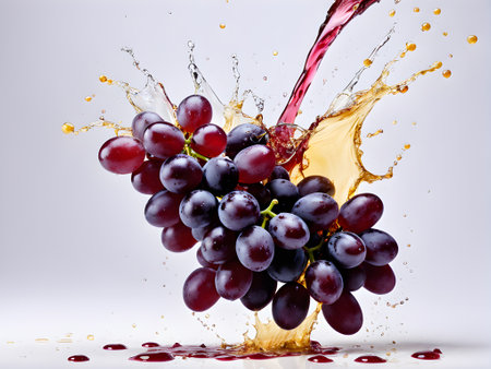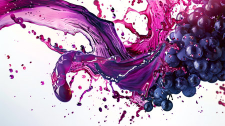 Grapes splashing in purple liquid create a vibrant display of wines natural essence