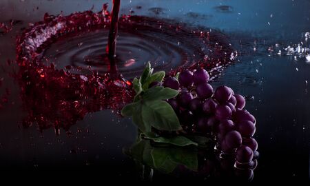 red grape in the red wine on a dark blue background