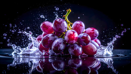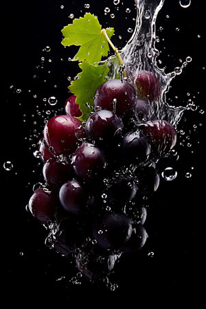 Dramatic Grape Splash: Water Droplets on Dark Background - Generative AI