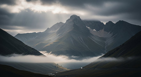 Majestic Mountain Peak with Misty Valley, generative Ai