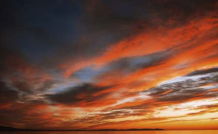 Fiery sunset sky. Beautiful clouds