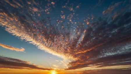 Colorful sunset displays vibrant hues over the horizon creating a breathtaking natural spectacle