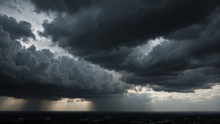 Captivating view of a stormy sky filled with dark clouds, creating a dramatic scene. The interplay of light and shadow evokes anticipation of changing weather.