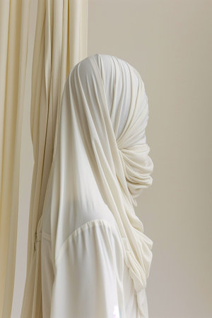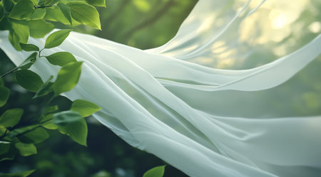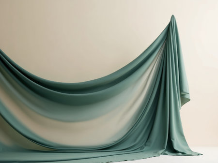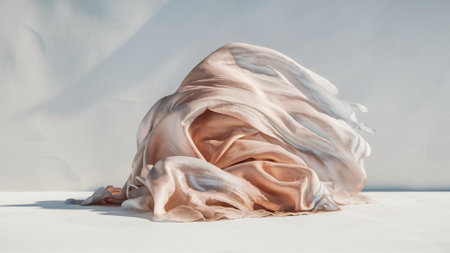 An elegant display of flowing fabric, beautifully draped against a soft background with gentle light and smooth texture, ideal for fashion and design themes.