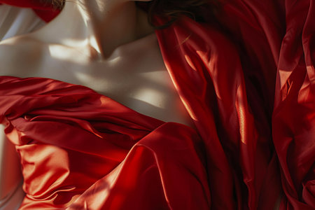 Close-up of a woman's body covered with red fabric.
