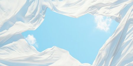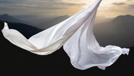 A dreamy scene of fabric panels caught in a gust of wind creating a mesmerizing ethereal effect