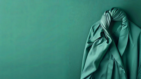 A luxurious velvet robe in deep green, tied with a precise and elegant knot. The rich texture and the knot's sophistication create a regal appearance.