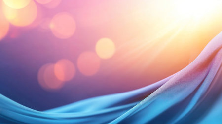 A beautiful image of flowing blue fabric set against a dreamy backdrop of bokeh lights, creating a sense of serenity and elegance.