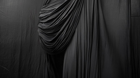 This image features elegant black drapery, showcasing textured fabric that creates depth and sophistication, ideal for artistic themes and minimalist design.