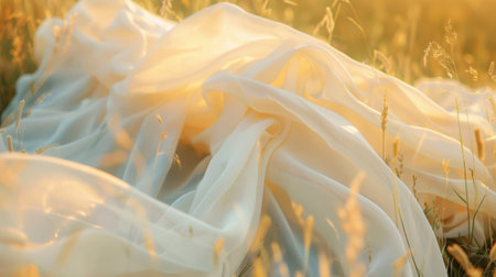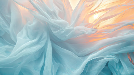 Soft, flowing fabric captures light in an ethereal display of delicate textures and warm tones, creating a serene and dreamlike atmosphere for artistic projects.