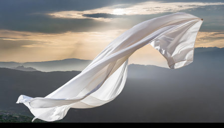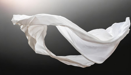 A high-quality, isolated cutout of a floating white silk fabric captured against a transparent background. Ideal for adding elegance and movement to digital compositions, advertisements, fashion
