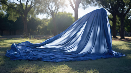 This image showcases an elegant draped fabric in deep blue tones, featuring soft textures and unique shapes that evoke sophistication and artistic flair. Perfect for fashion and textile concepts.