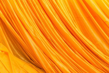 Yellow cloth for monks and Buddha statue taken in afternoon, useful for religious concept