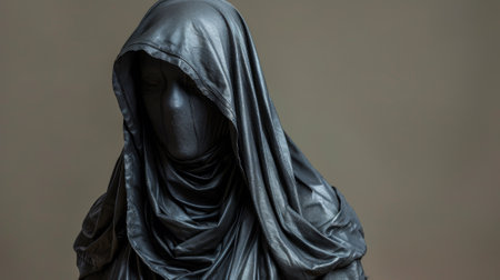 A statue of a woman wearing a hooded cloak and veil, AI
