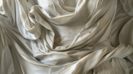 A beautiful depiction of smooth, flowing fabric drapery in soft beige tones, emphasizing delicate textures and elegance, perfect for design inspiration and decoration.