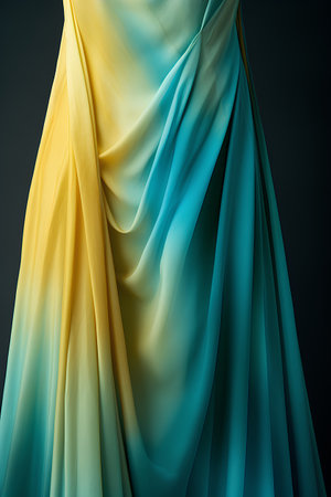 Delicate yellow fabric flows elegantly, catching light and casting soft shadows. Ideal for design projects that require warmth and vibrancy in imagery.