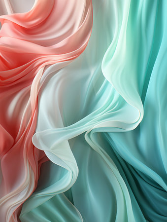Translucent thin fabric fluttering in the wind. Abstract wavy background. AI generated.