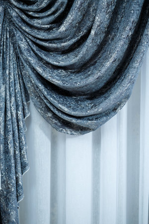 Beautifully draped blue curtain decoration in room