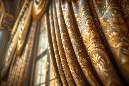 golden curtain in a church, closeup of photo with selective focus