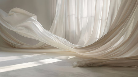 Soft white curtains are simple yet elegant for graphic design or wallpaper. Blurred cloth pattern with luxurious texture. Beautiful abstract background with smooth waves in a vintage style.