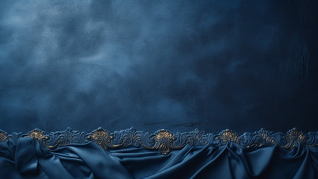 Curtain with soft smooth flowing folds. Deep blue color and luxurious texture create a dramatic and elegant atmosphere. Decoration and interior design. Expensive curtain made of rich fabric. AI.