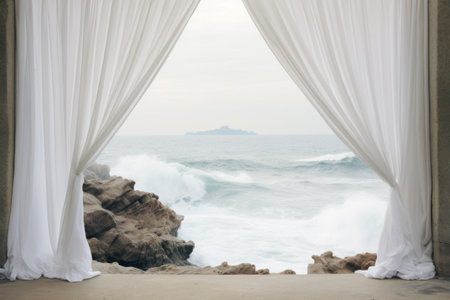 Serene Coastal Setting: Embracing the White Curtain near Ocean Waters (AR 3:2)