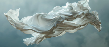 Generative AI technology.Cloth flying in the sky, the material of the soft cloth