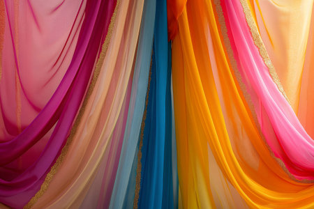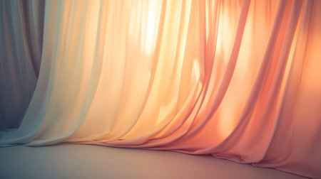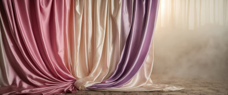 Flowing silk curtains in pastel colors are creating an elegant background with copy space.