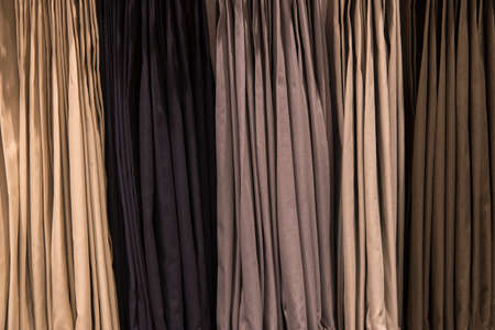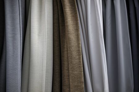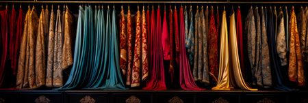 Assorted Colored Drapes Hanging on Wall in a Neat Row.