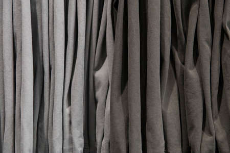 Detailed close up view on samples of cloth and fabrics in different colors found at a fabrics market.