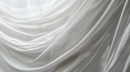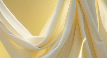 An elegant display of flowing fabric, beautifully draped against a soft background with gentle light and smooth texture, ideal for fashion and design themes.