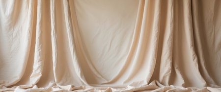 Soft beige fabric drapes in elegant folds with subtle shadows and highlights creating a gentle texture.