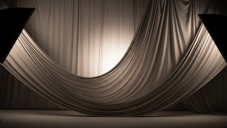Beautifully draped fabric creates an elegant and artistic atmosphere with soft folds and sophisticated lighting, perfect for backgrounds and interior design projects.