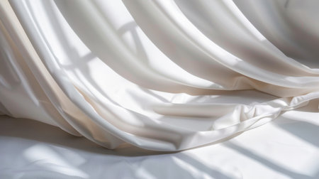 This image showcases soft and elegant draped fabric that creates a serene atmosphere enhanced by gentle natural light and delicate shadows, perfect for interior design inspiration.