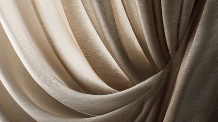 Discover the delicate beauty of softly draped fabrics in a gradient of warm neutral tones, highlighting exquisite textures and fluid movement for interior inspiration.
