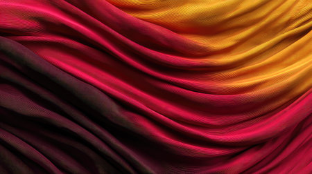 This stunning image features a flowing fabric texture with rich shades of red, orange, and yellow, creating a captivating and dynamic background for various design uses.