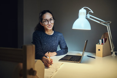 Portrait of young woman at her workplace in the home