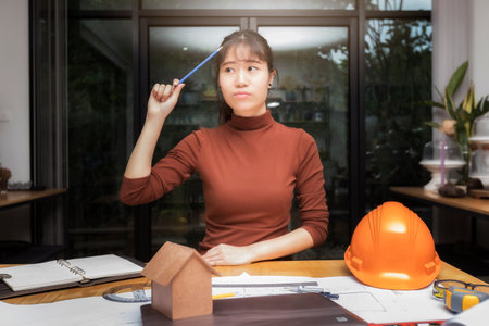 Female architect working with new startup project and thinking about her project at home office.