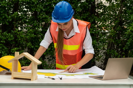 Experienced architect double checking house floor plan on her desk