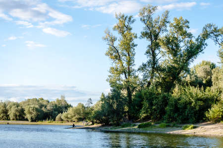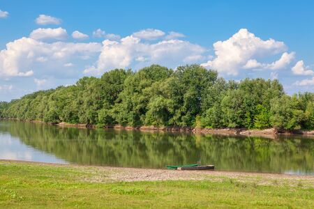 Beautiful river landscape by summer with green tree ashore