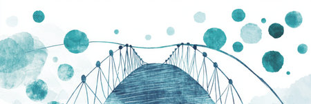 The artwork features a creatively stylized bridge with flowing lines and playful colors, suggesting a tranquil environment and connection.