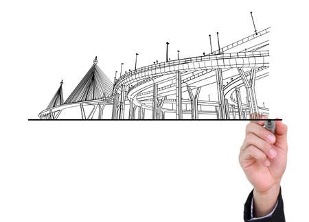 businessman drawing highways isolated on white background