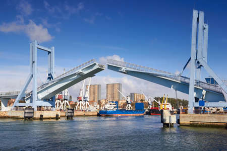 ANTWERP, BELGIUM - AUG 13: Opened steel bridge on August 13, 2015 in the harbor of Antwerp, Belgium