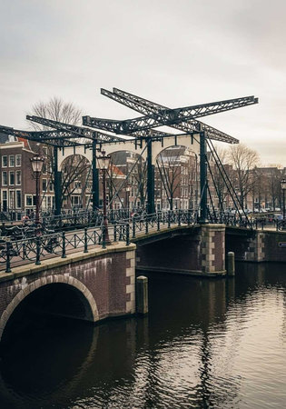 Medieval drawbridge in Amsterdam Netherlands at sunset