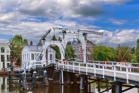 Leiden, APR 22: Bridge landscape and cityscape on APR 22, 2018 at Leiden, Netherlands