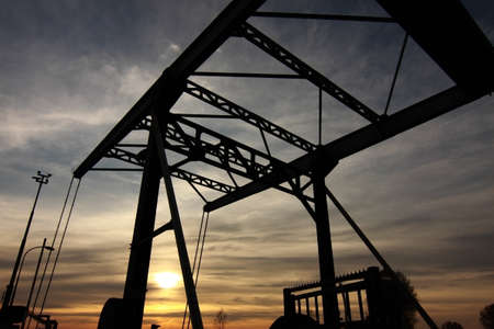 Small draw bridge raised to allow tall ships to pass. Horizontal shot