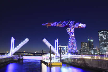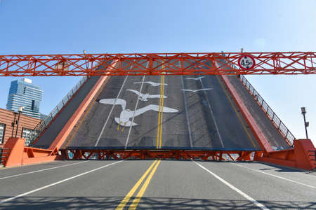 Modern Bascule Bridge Lifting over Waterfront in Kitakyushu, Japan