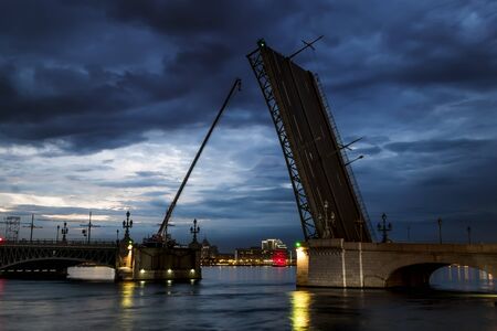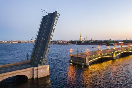 View of the divorced Palace Bridge in the early June morning. Saint-Petersburg, Russia